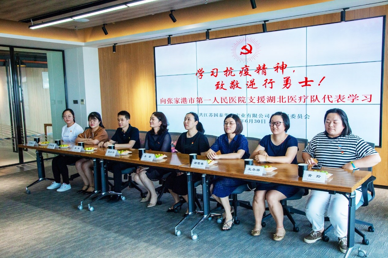 There were 3 items on the agenda of the meeting. In the first agenda, the secretary of general Party branch Jin Zhijiang delivered a report on the work of the last General Party branch. He not only affirmed the past achievements of the party branch, but also pointed out the shortcomings, and suggested the direction for future efforts. The second agenda was to elect new Party General Branch Committee of GTHS. Jin Zhijiang, Zhu Ronghua, Xu Yan, Gu Huafeng and Shen Yulan were elected as members of the new General Branch of the Party in a plenary vote. In the third agenda, GTHS invited the medical team of Zhangjiagang First People’s Hospital to make a report on the fight against COVID-19 epidemic in HuBei Province. The director of emergency department Li Lei, the head nurse of ICU Xia Caifen, and communist representatives all shared their true stories via photos and videos. Their experiences of fighting on the front line were much more difficult than our imagination. All party members were deeply moved by their stories. They showed much respect to the heroes, and expressed their determination to learn the spirit of hard struggle against the epidemic and to be excellent Party members.